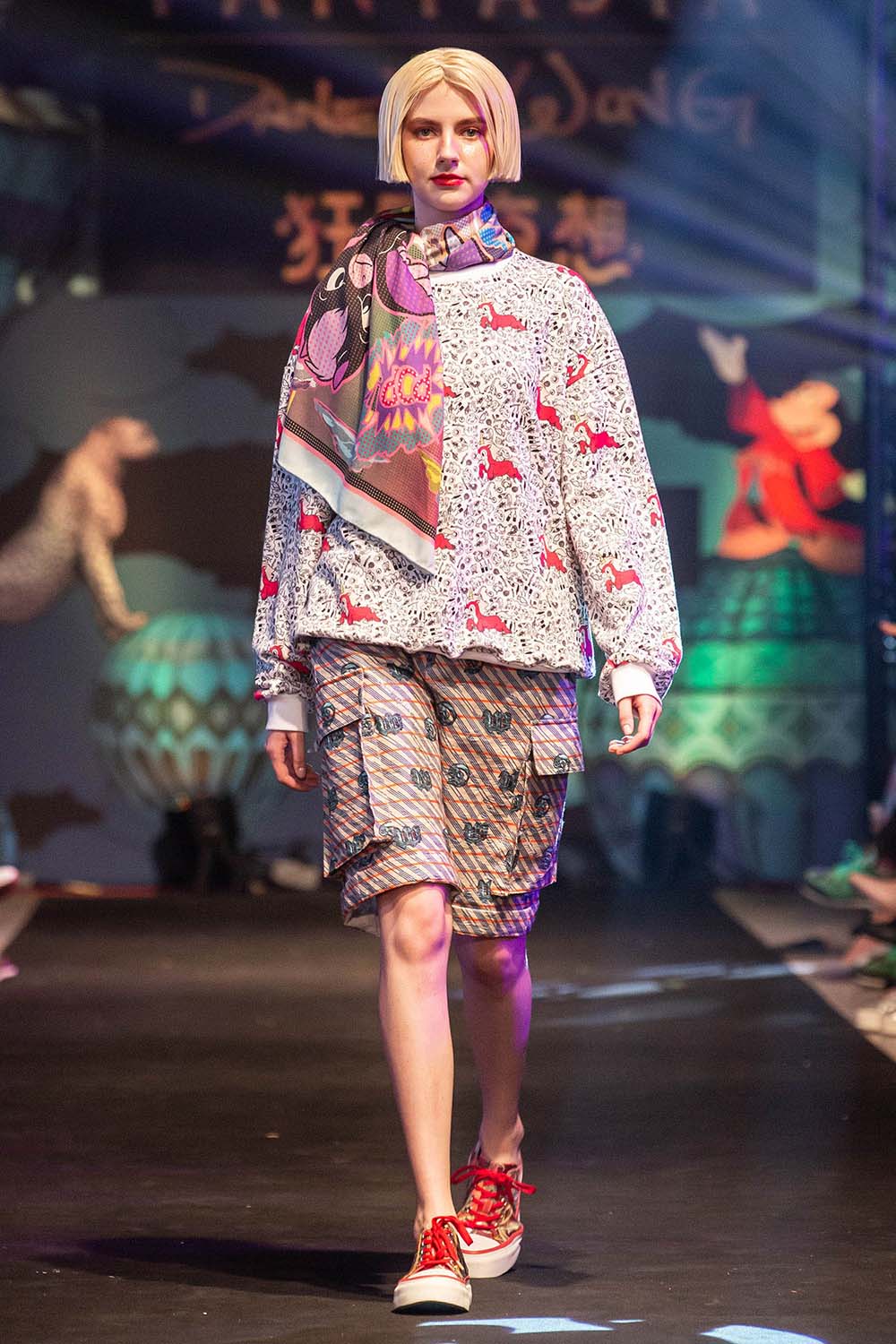 本季服裝細節上,品牌以獨特印花語言延伸出嶄新的視覺想像,並將圖像以絲巾、針織織紋、全印花以 及刺繡水洗的詮釋手法展現。希望藉由各種巧思與面料的轉換帶給探索者實穿卻不失樂趣的穿著思維。秀場 風格,品牌以四個篇章作為敘事主題: